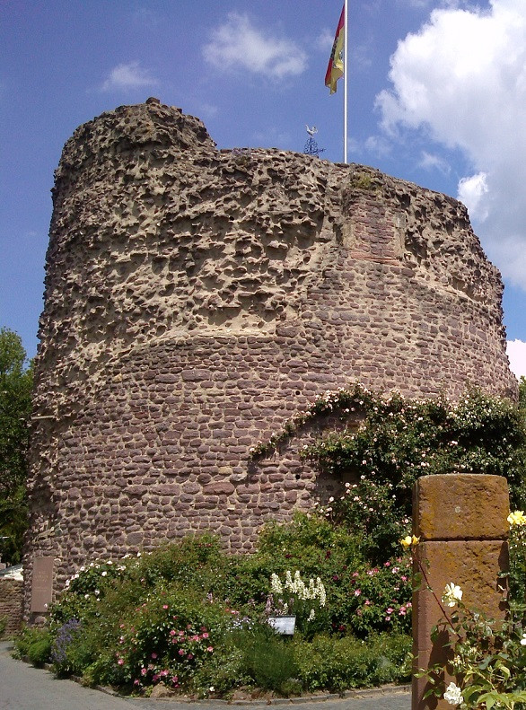Le donjon (tour ronde) a été construit vers 1180 dans le cadre de l'élargissement du château des seigneurs Hagen-Münzenberg.