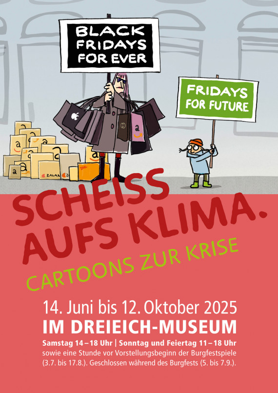 Mehrmals im Jahr sind im Dreieich-Museum unterschiedliche Wechselausstellungen zu sehen. Freuen Sie sich mit uns auf die Karikaturen-Ausstellung „Scheiß aufs Klima. Cartoons zur Krise“, die als Leihgabe der Caricatura Galerie in Kassel bis 12. Oktober im Dreieich-Museum zu Gast ist. Denn was die einen noch leugnen, ist längst das ganze Jahr über auch in Deutschland spürbar: Das Klima verändert sich.