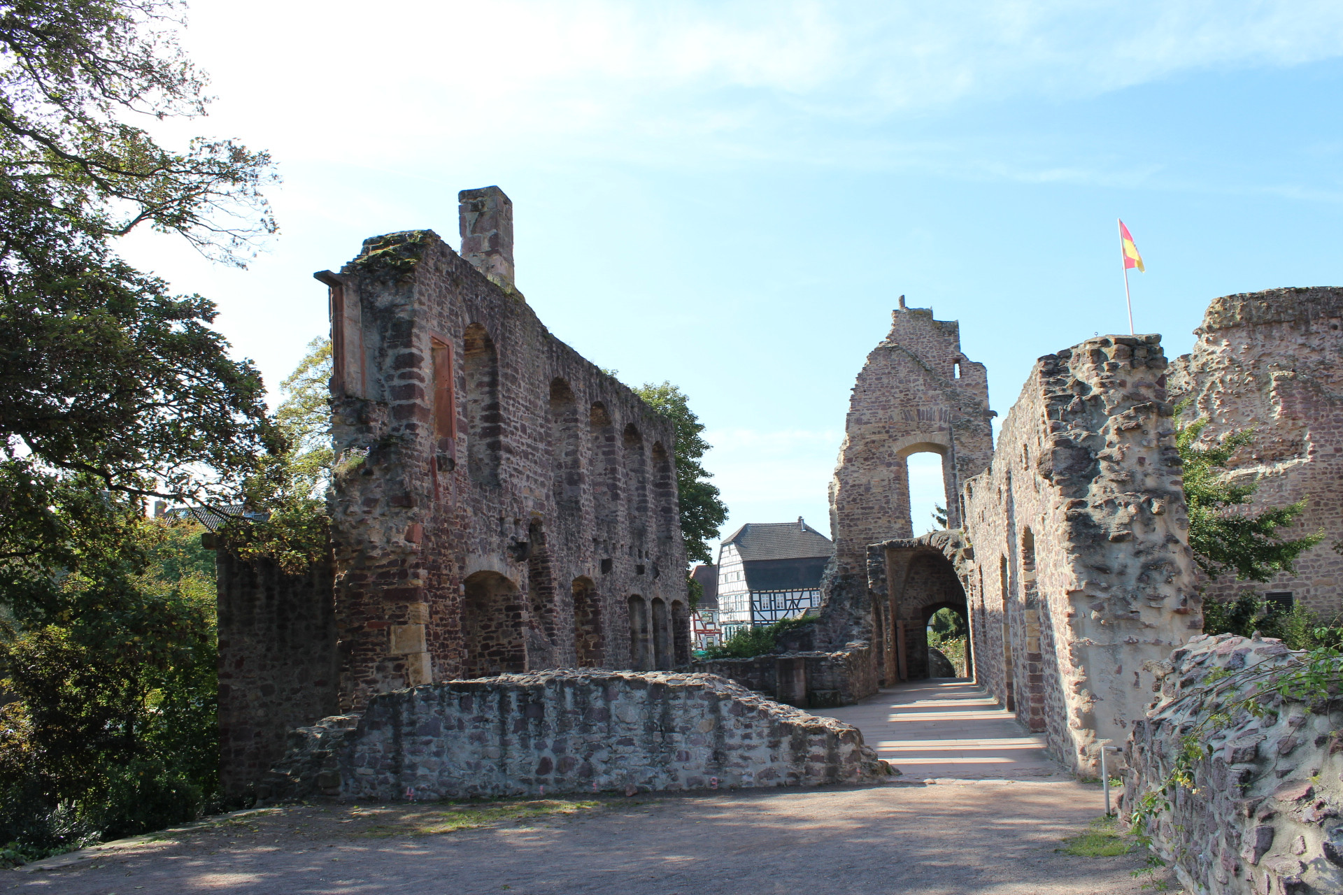 Le donjon (tour ronde) a été construit vers 1180 dans le cadre de l'élargissement du château des seigneurs Hagen-Münzenberg.