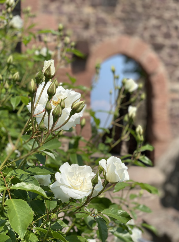 Seit den 1980er-Jahren gibt es bei den Rosenzüchtern aller Länder eine wahre Renaissance sog. Alter Rosensorten. Dabei stehen die Nachzüchtungen ihren neugezüchteten Verwandten, was Farben, Formen und Duft angeht, in nichts nach. Da sie leider nur einmal im Jahr blühen, wurden sie sorgfältig ausgewählt und zu gut harmonisierenden Rosensorten des 20. Jahrhunderts, mit sehr viel längeren und häufigeren Blühperioden, gruppiert. Insgesamt finden sich über 160 Sorten alter und moderner Rosensorten innerhalb der Burgmauern.