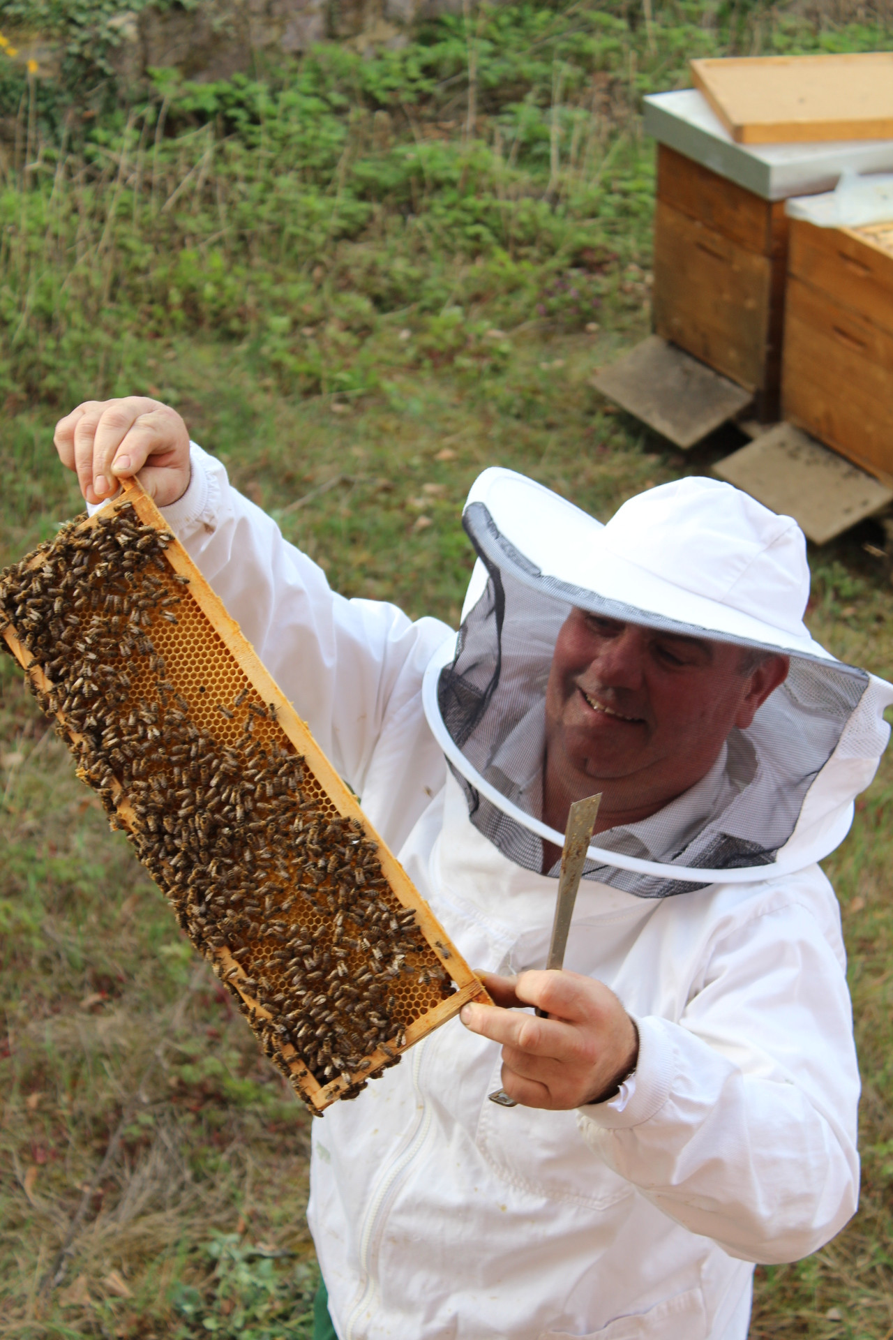 Der Imker Hermann Grennerth (Bienenzuchtverein Dreieich e. V.) kümmert sich um die Bienen und schleudert den leckeren Museumshonig, den wir im Museumsshop zu den üblichen Öffnungszeiten (Sa 14-18 Uhr, So und Feiertage 11-18 Uhr) und in der Geschäftsstelle des GHV verkaufen.