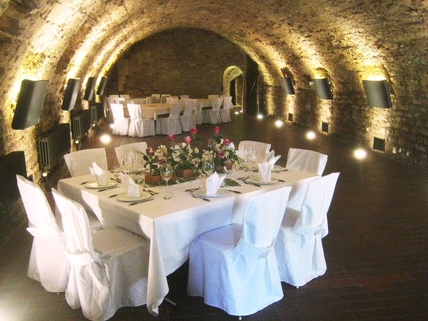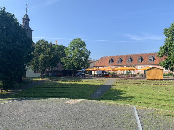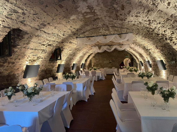 Der Palas, das ehemalige Wohngebäude der Burganlage, bietet unter freiem Himmel Platz für Sektempfänge und andere Feierlichkeiten.